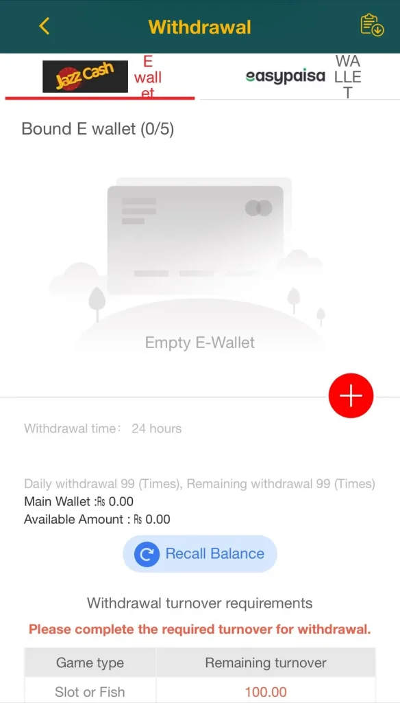 Deposit funds through JazzCash or Easypaisa if you want to play paid games. You can also enjoy free bonuses without depositing.